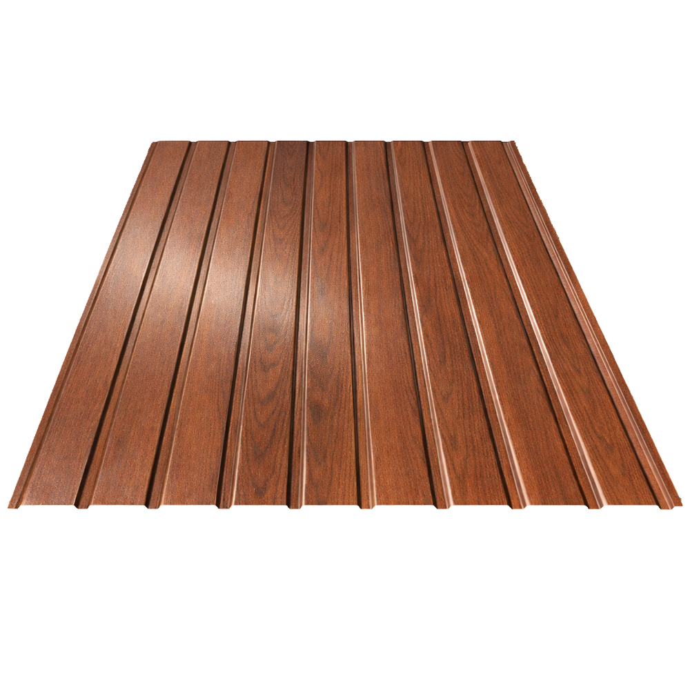 Nos tôles de bardage imitation noyer offrent un rendu chaleureux et esthétique, tout en bénéficiant des avantages de l’acier : résistance, légèreté et facilité de pose. Elles sont idéales pour l’habillage de façades, en neuf comme en rénovation.