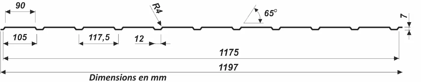 La tôle de bardage IMITATION BOIS est fabriquée en acier galvanisé de 0,5 mm, protégé par un revêtement zinc-magnésium 70 g/m² et une épaisse couche de vernis polyester.