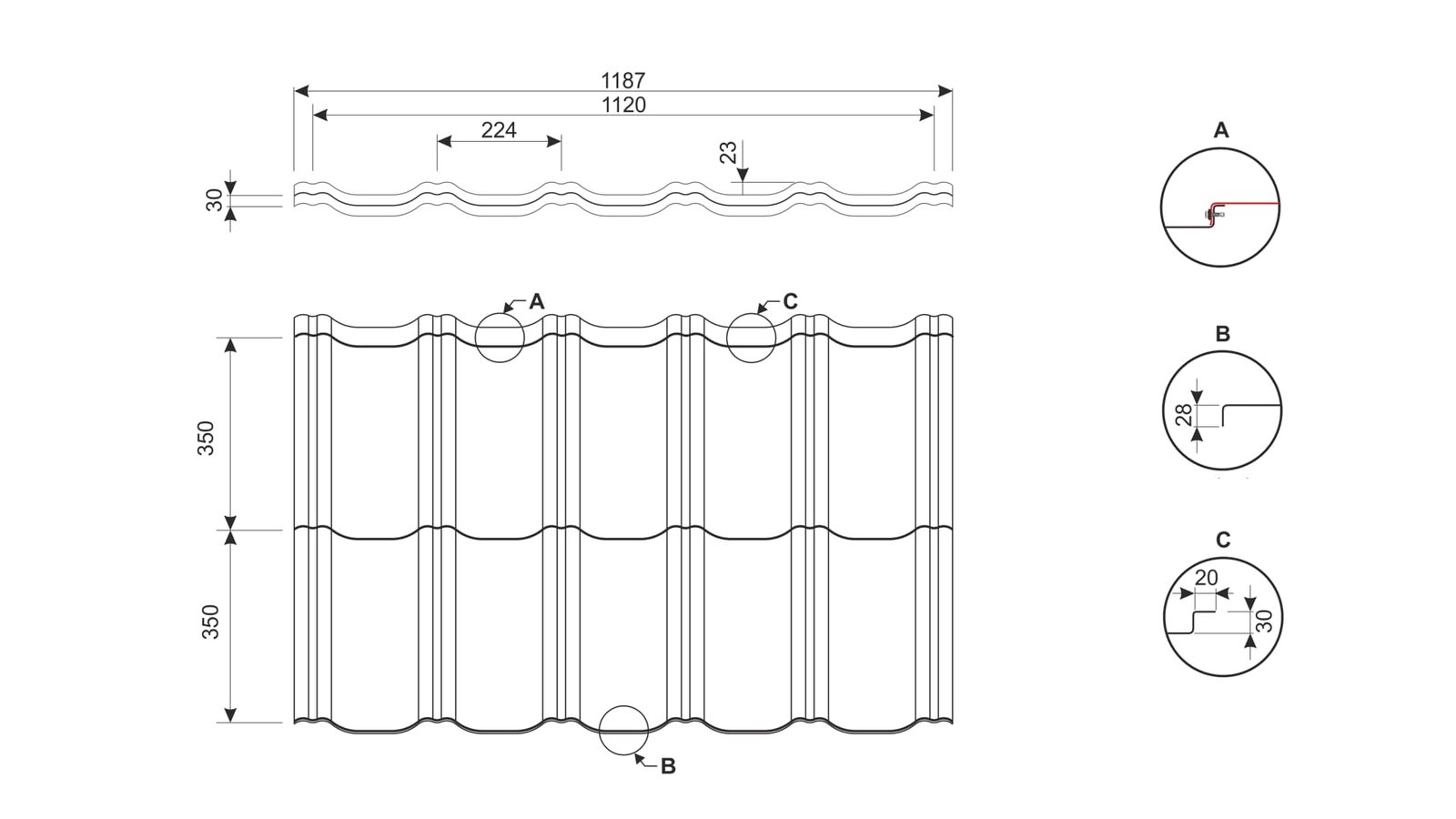 Tôle modulaire imitation tuile « P » Article sur commande